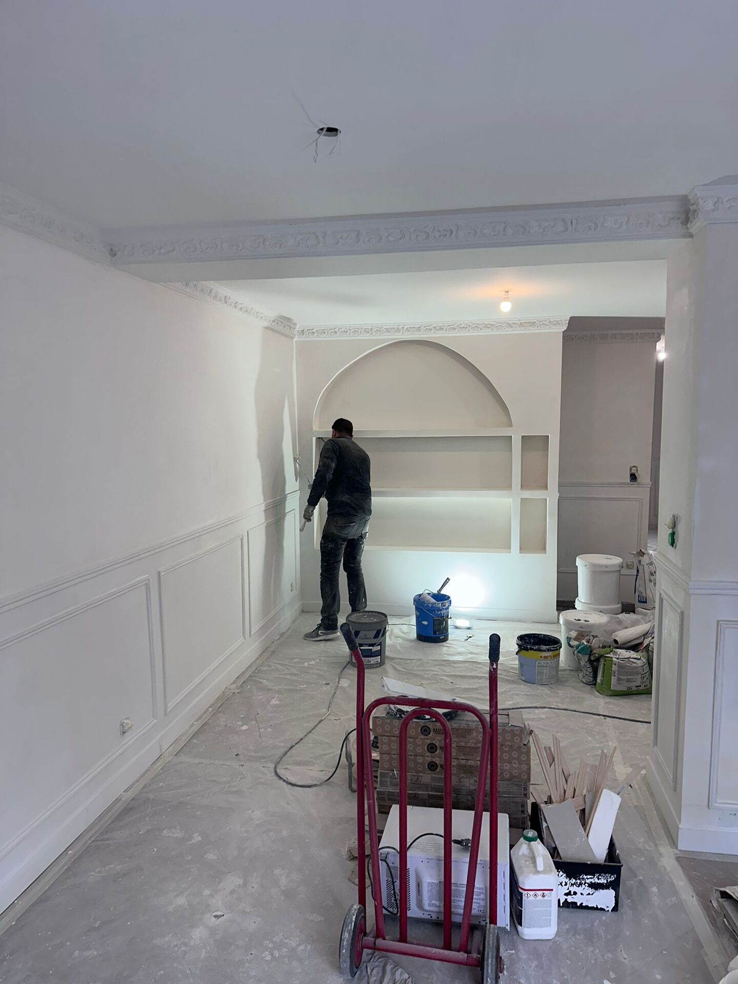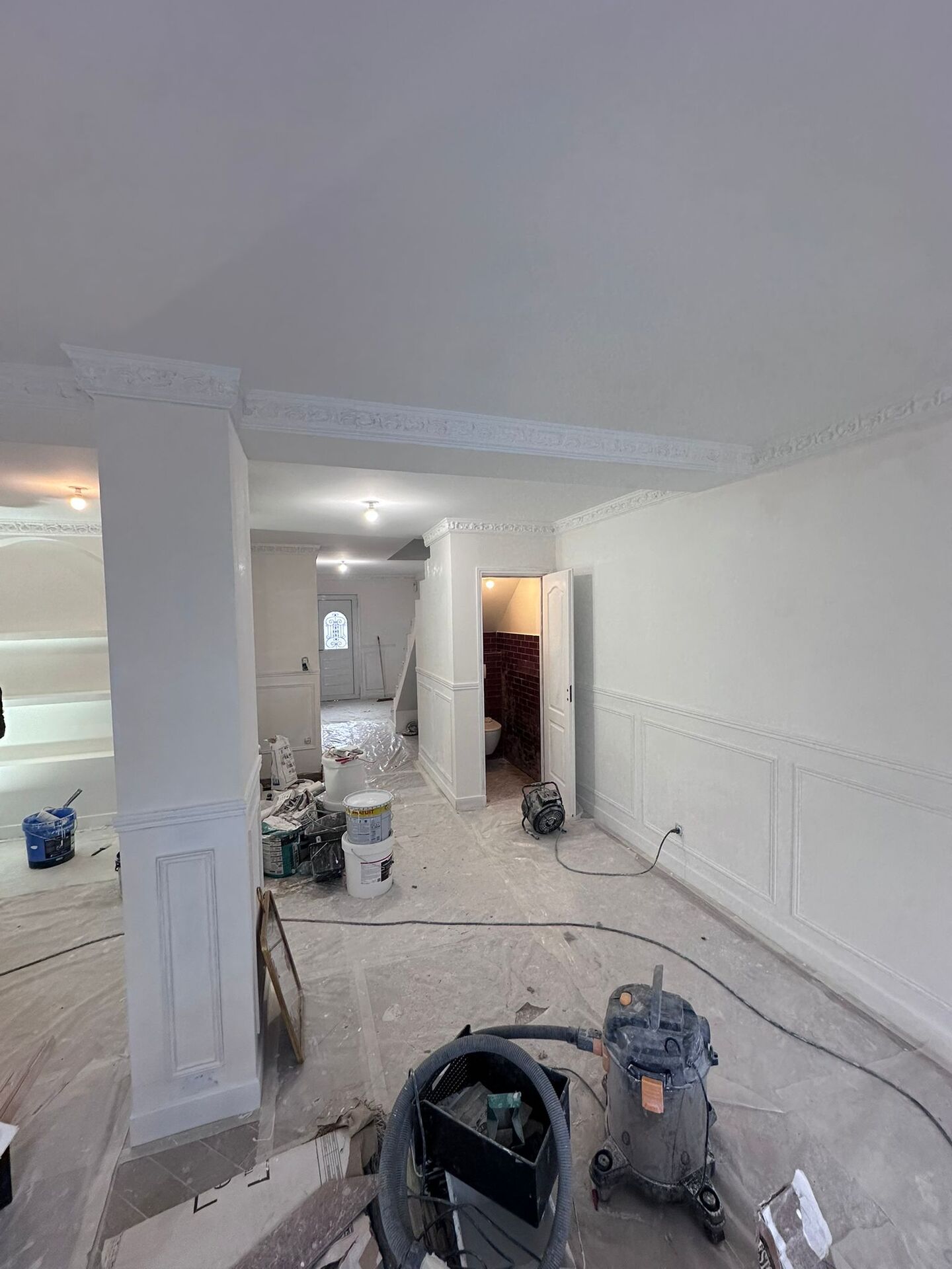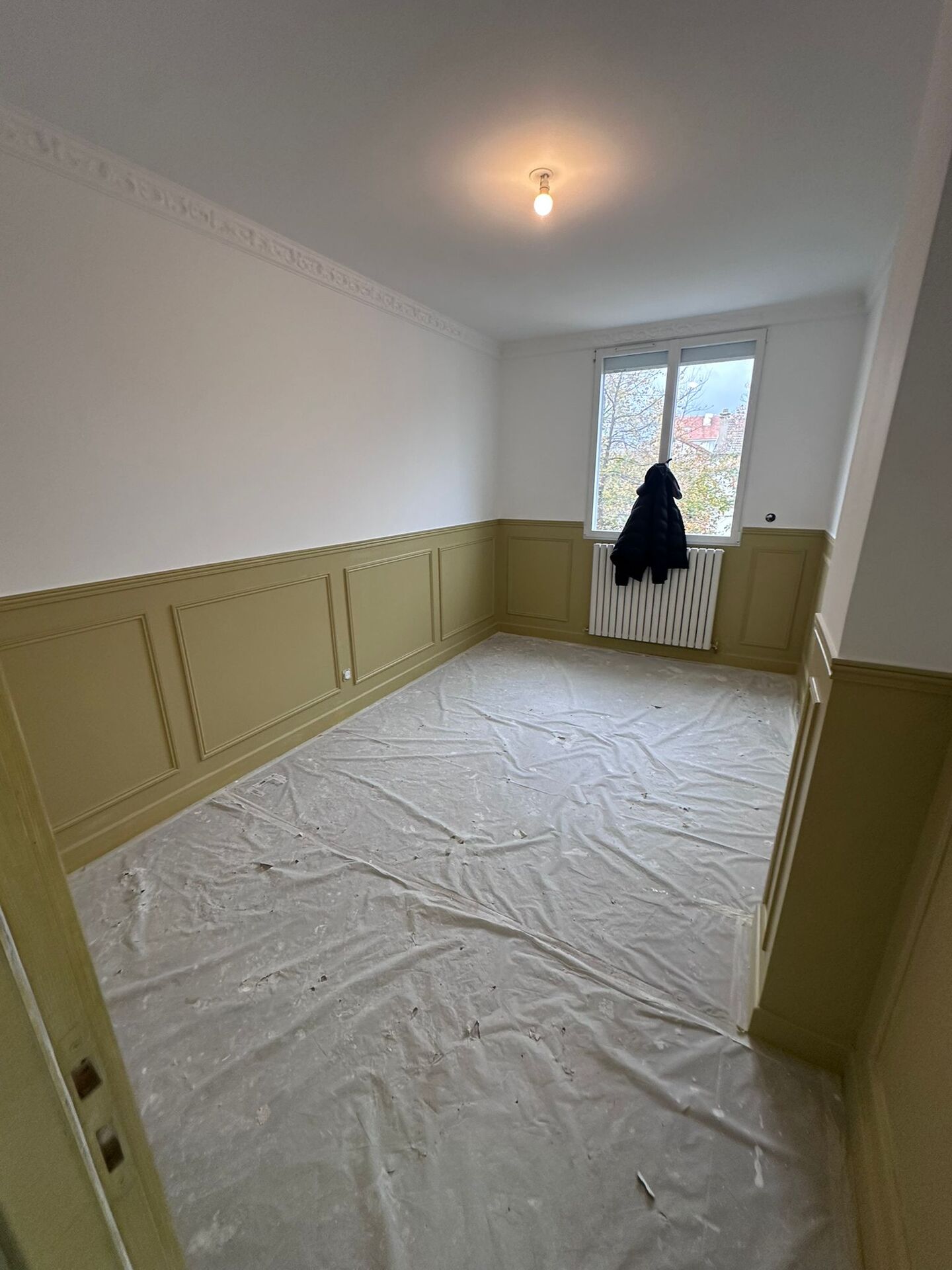 Moulures au plafond restaurées avec soin, apportant une touche d’authenticité et de sophistication à chaque pièce.